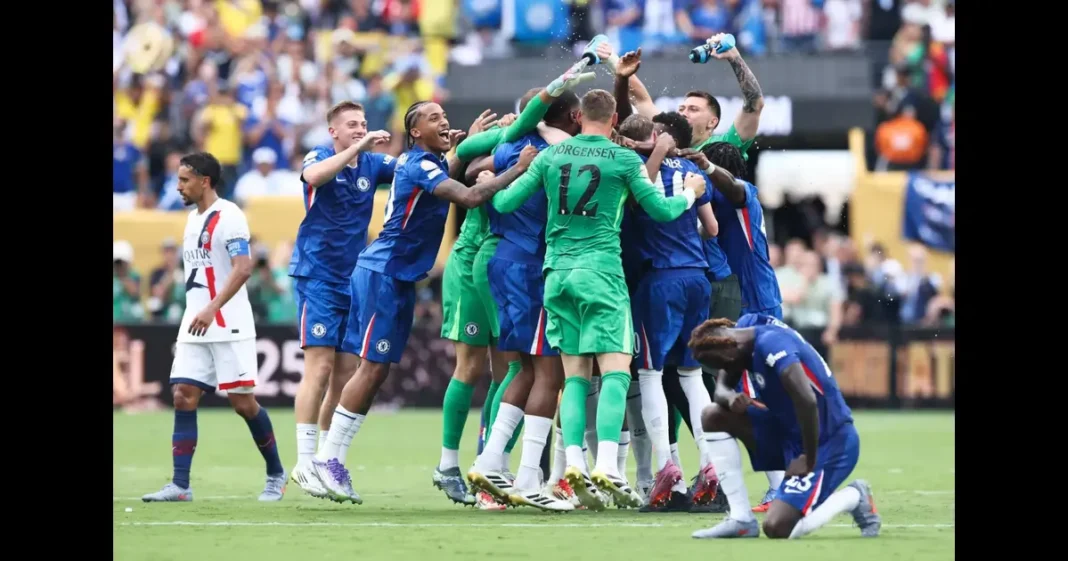 توج تشيلسي الإنجليزي بلقب النسخة الأولى من مونديال الأندية لكرة القدم بحلته الجديدة الموسعة، وذلك بفوزه الكبير على باريس سان جيرمان الفرنسي 3-0 بفضل نجمه كول بالمر الأحد في النهائي على ملعب “متلايف” في إيست راذفورد بولاية نيو جيرسي.