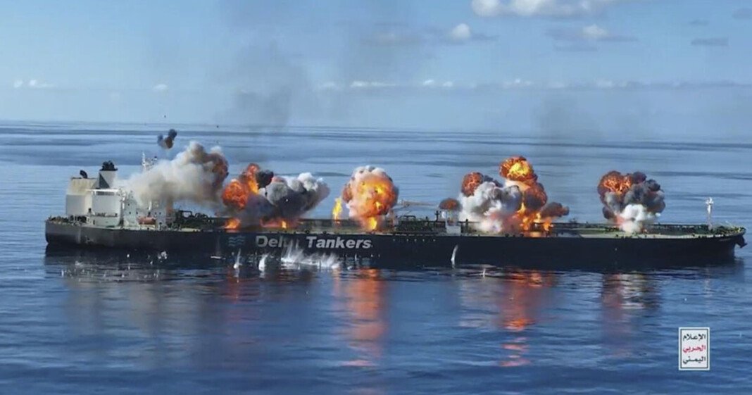 هجوم صاروخي حوثي يشعل النار في سفينة بخليج عدن